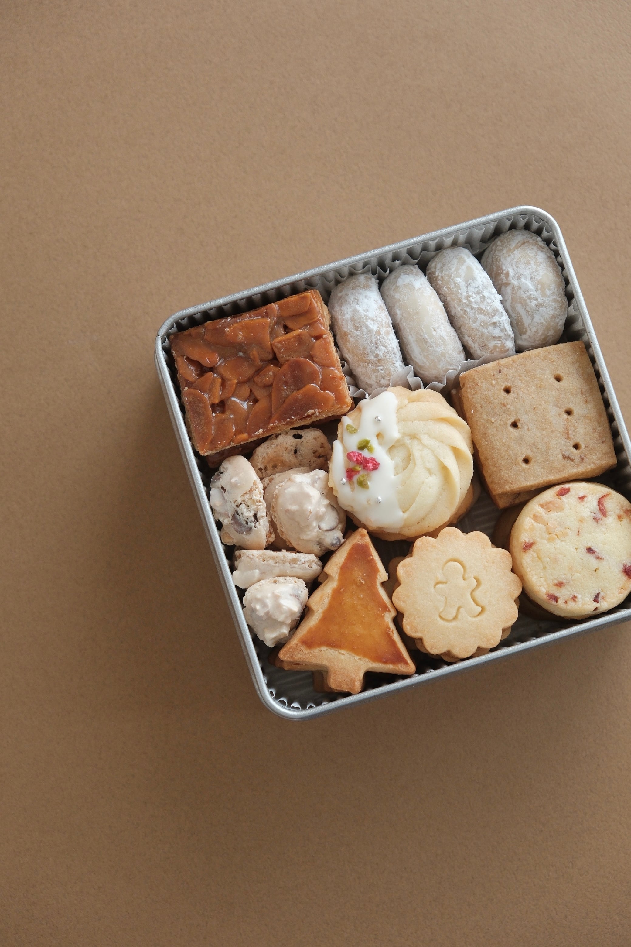 以下8種類のクッキーが詰まったクリスマスクッキー缶です。